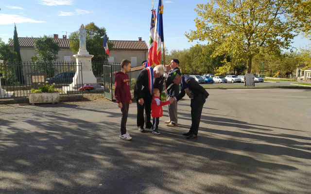 La gerbe a été déposée par M le Maire et aidé par des enfants du village.